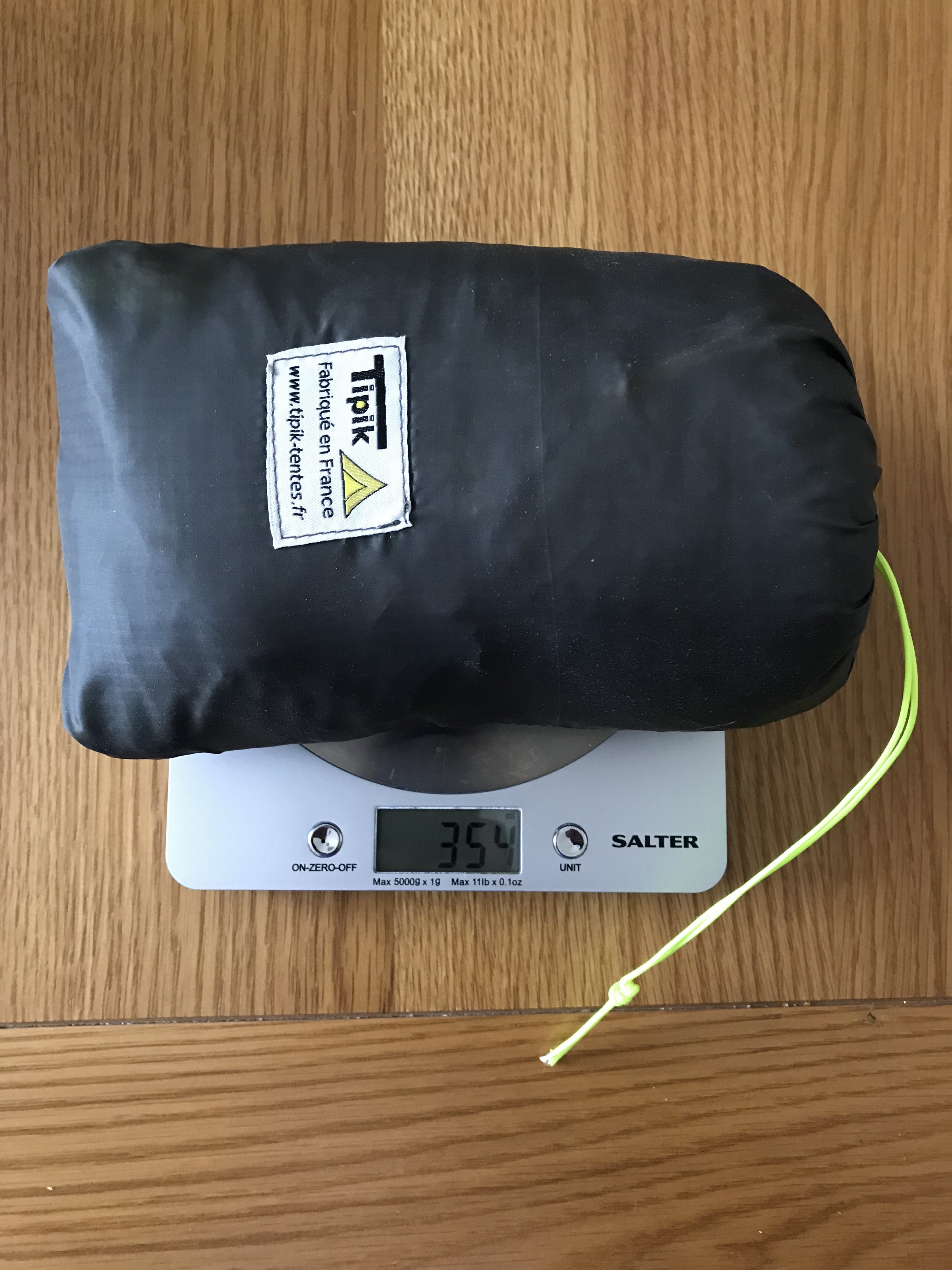 As you can see form the pictures above, the shelter packed away is pretty small the out of the box weight was 354g. The stuff sack is made from the same Silpoly as the fly and finished very well.